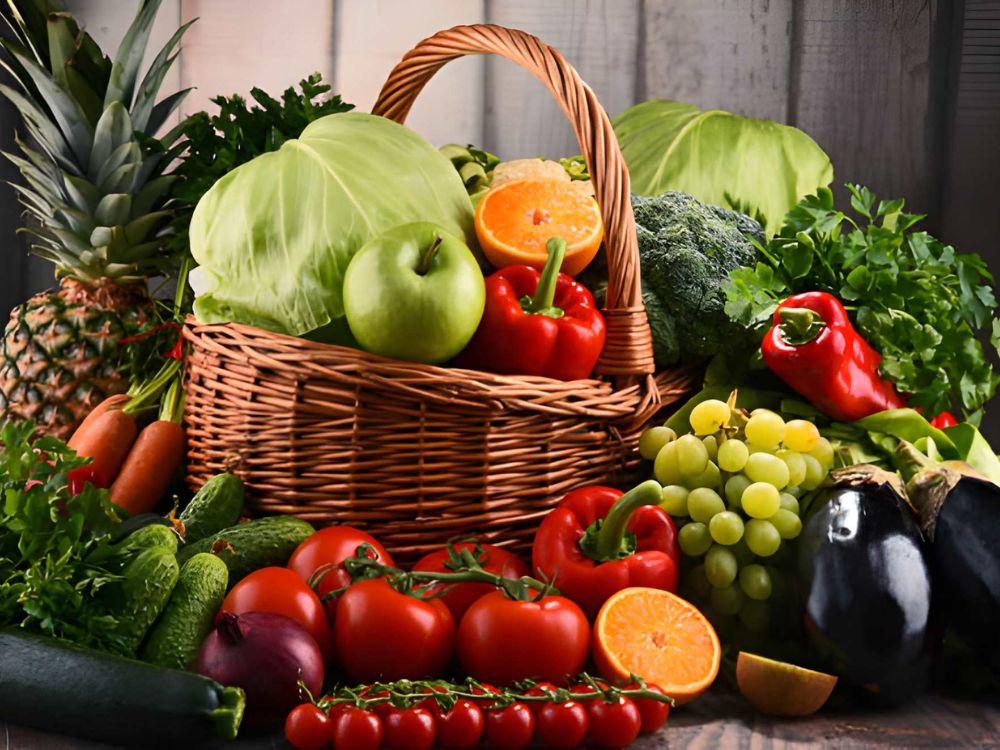 Un assortiment de fruits et légumes de saison + spécialité du Sud.
